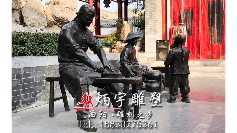 清朝人物雕塑 剃頭理發(fā)人物雕塑 鑄銅人物雕塑