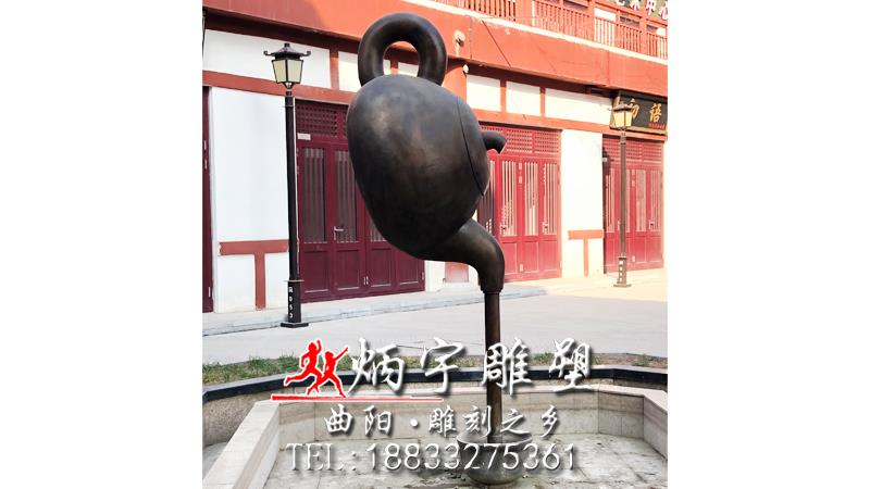 懸空茶壺雕塑 噴泉流水?dāng)[件 鑄銅雕塑