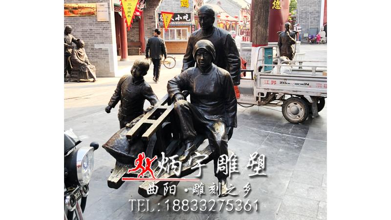 推車人物雕塑 一家三口親情雕塑 人物銅雕鑄造廠