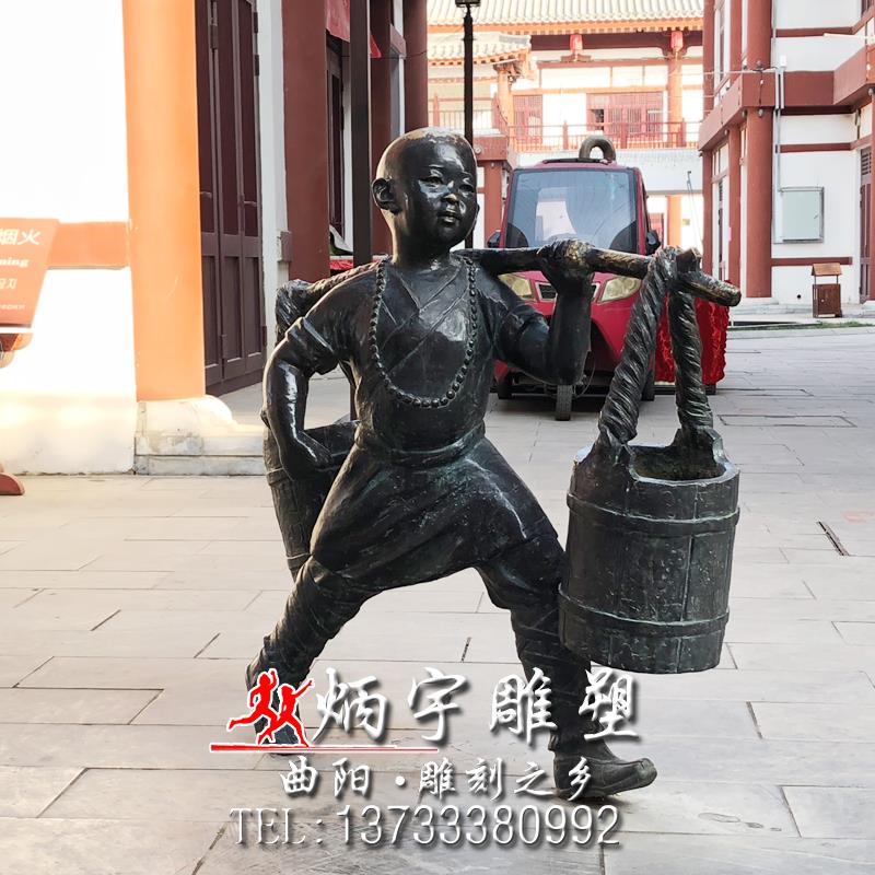 小和尚雕塑 挑擔(dān)人物雕塑 鑄銅人物雕塑