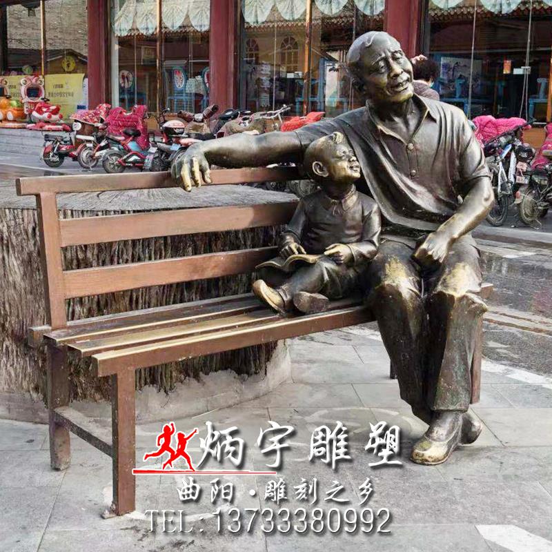 童趣小孩看書(shū)雕塑 公園人物座椅雕塑 爺孫親情雕塑