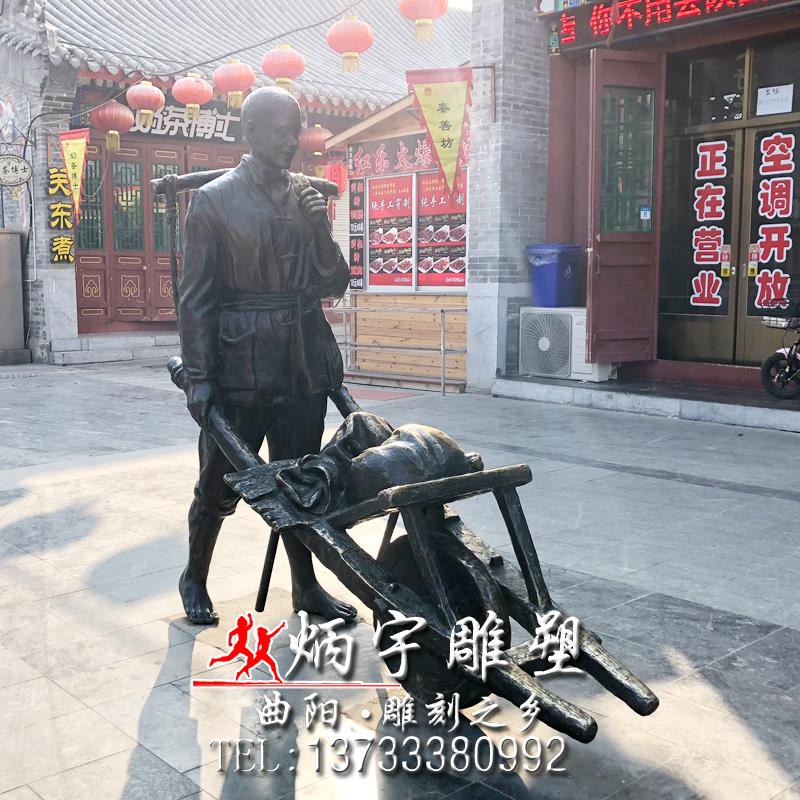 古代獨(dú)輪車雕塑 推車人物雕塑 鑄銅人物雕塑定制