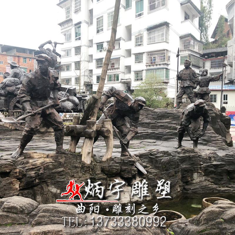 勞動(dòng)人物雕塑 八路軍雕塑 鑄銅雕塑定制