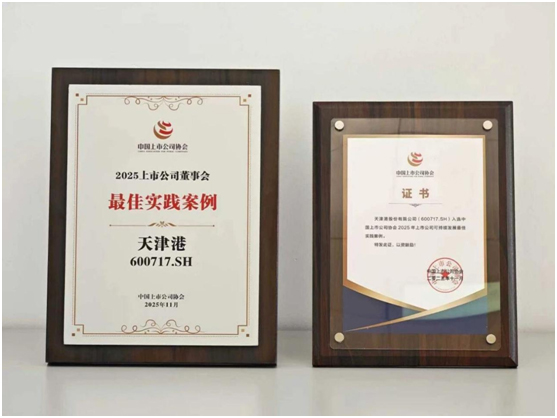 日前,中國上市公司協會第三屆理事會第六次會議暨2025可持續發展大會在京召開,旨在引導資本市場及上市公司更好地服務國家戰略,為“十五五”高質量發展開好局、起好步。天津港股份有限公司憑借在董事會建設、可持續發展等方面的卓越表現,在激烈角逐中一舉斬獲中國上市公司協會“2025董事會最佳實踐案例”及“2025可持續發展最佳實踐案例”兩項榮譽,實現了獎項“雙豐收”,成為行業內備受矚目的“雙最佳”企業。